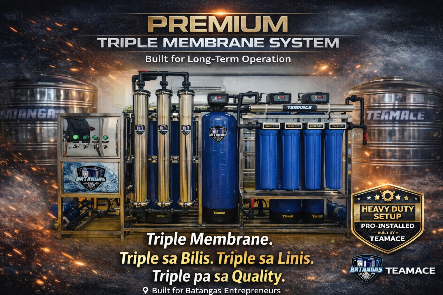 Batangas WRS Supplier provides professional water station installation in Batangas for entrepreneurs who want to start their own water refilling station business. Our team offers complete solutions including system planning, filtration setup, reverse osmosis membrane systems, stainless steel tanks, pumps, and complete accessories needed for water production.